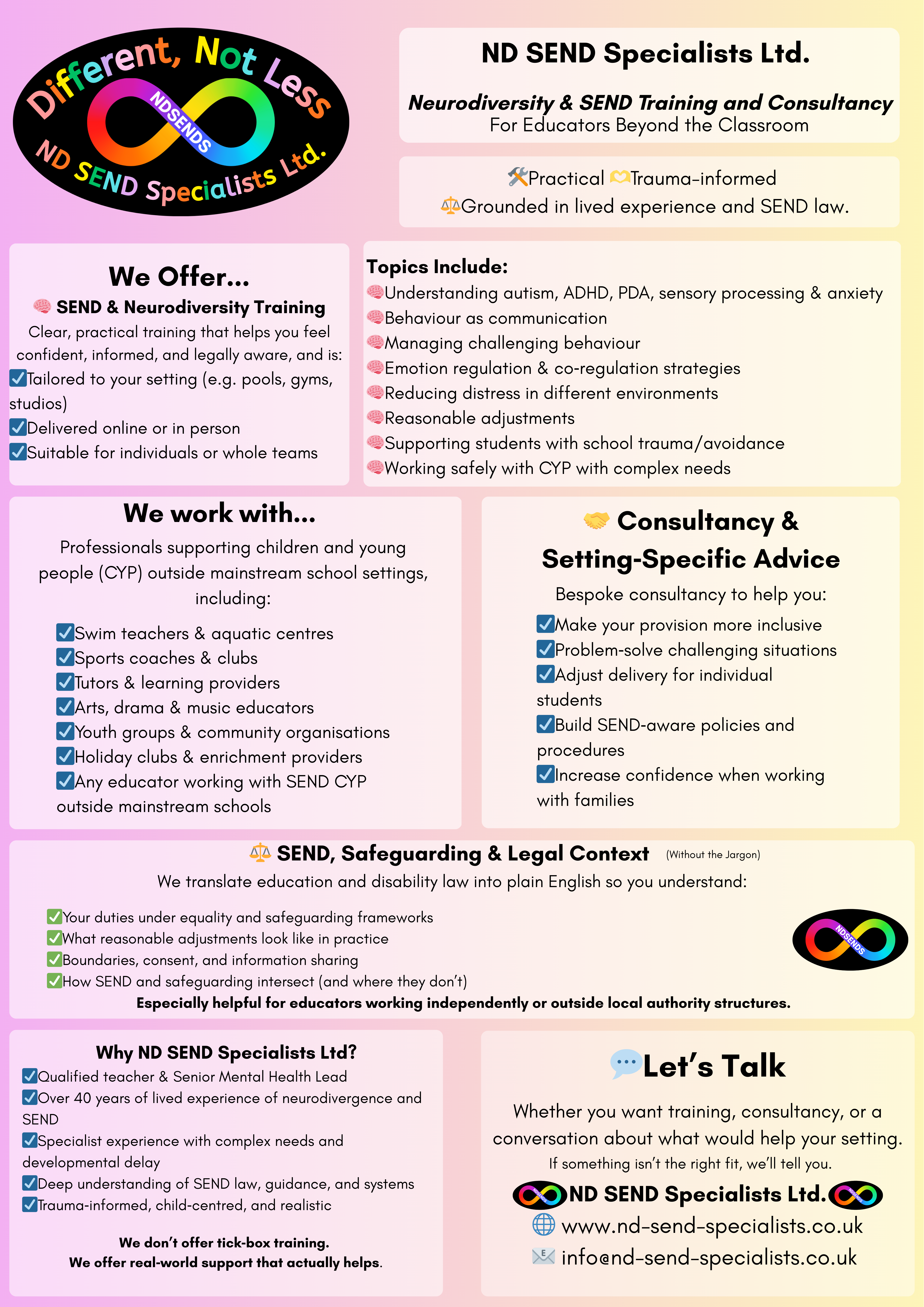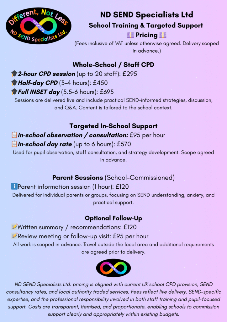 Whole-school / small group training on a variety of aspects of SEND and Inclusion